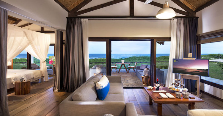 The resort has suites located on the beach and comprising a separate bed room, a living room and a large terrace overlooking the sea with two open-air showers. All of the rooms are tastefully decorated in a contemporary style combining local elements and materials.