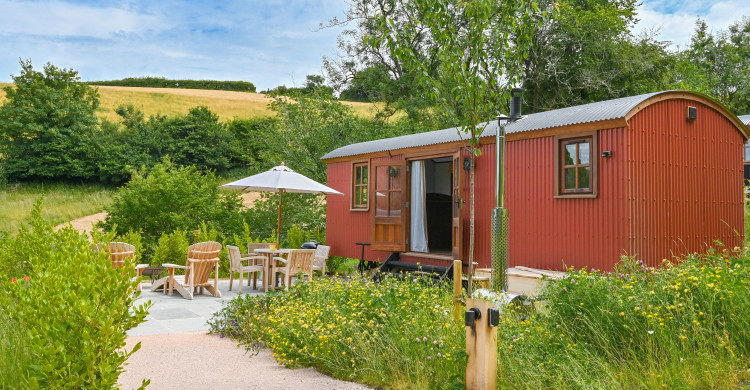 All 5 Shepherds Lodges are positioned in the old meadow of wild flowers with lovely views down the wooded valley.