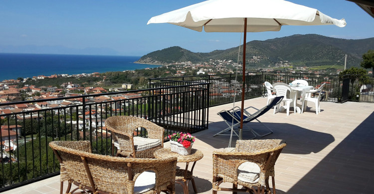 Newly built, the deluxe 4-person apartment measures approximately 60 m2 and includes a large living room with kitchen, two bedrooms and a bathroom. The apartment has a large independent terrace / solarium overlooking the entire gulf with a breathtaking view! It is possible to add an extra bed (with an additional cost) for a fifth person.