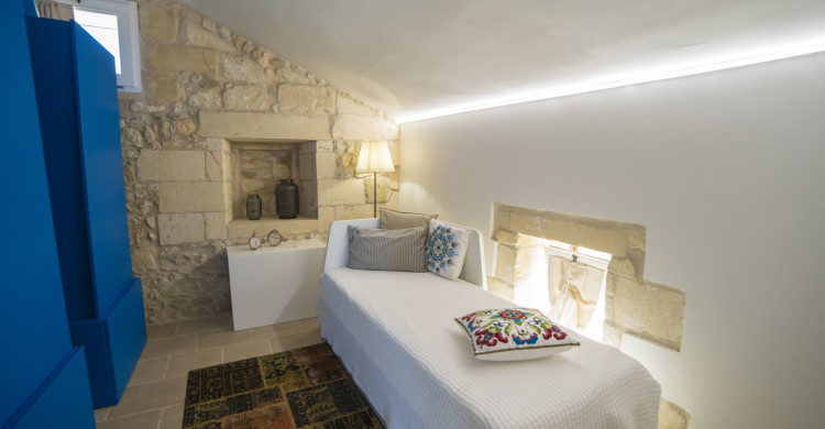 In its sobriety is born our Suite RICAMO, Original, Unusual, Authentic. Plays of lights comes out from the different embroidery of the wall giving an intimate atmosphere.