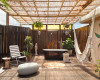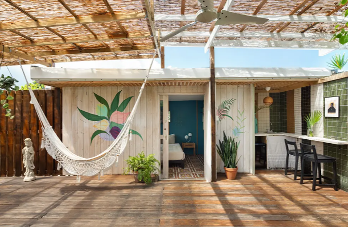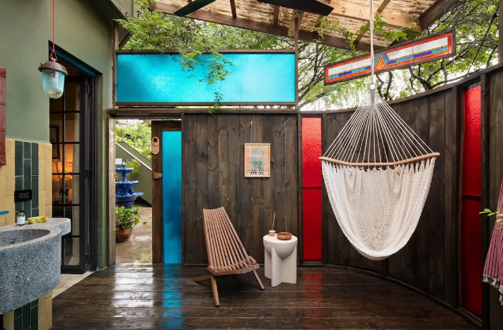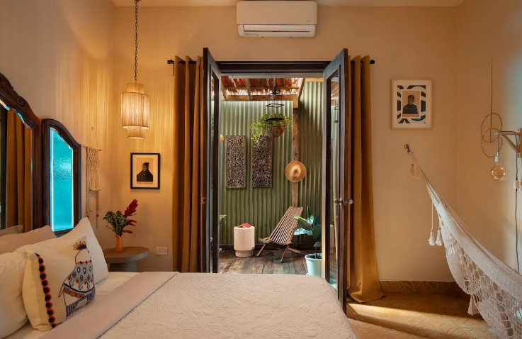 Designed with couples in mind, Dreamcatcher is a sanctuary for love and connection. Swing together in a hammock, share a long soak in an outdoor tub under the stars, or relax on a private terrace while listening to tropical birdsong. Each corner is filled with intimate details — from vintage furnishings and hand-painted murals to hidden garden patios — making it an ideal setting for honeymoons, proposals, anniversaries, or simply a romantic getaway.