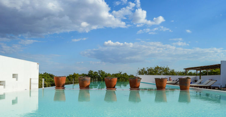 Ecorkhotel’s green credentials couldn’t be more pristine. The hotel is built primarily from cork, an entirely natural material that also appears in the surrounding landscape, as though the hotel had grown from the earth. This is the first hotel in the world to use cork trees in this way. Fittingly, the hotel boasts a large, well-tended garden along with swimming pools both inside and outside that are heated using geothermal energy. From the Turkish baths to the generously proportioned rooms, the stunning olive-tree strewn landscape to the exquisite architecture, every detail of Ecorkhotel is to be admired and luxuriated in.