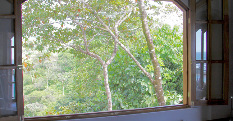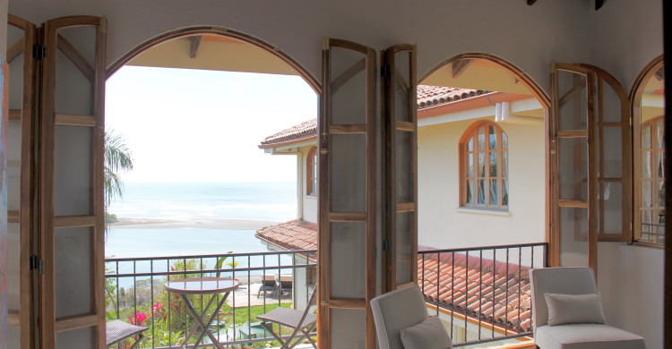 Perfect for privacy, our two-bedroom owner’s suite sits beside the main building on the upper level. The room has an ocean view through the south garden. Perfect for two couples.