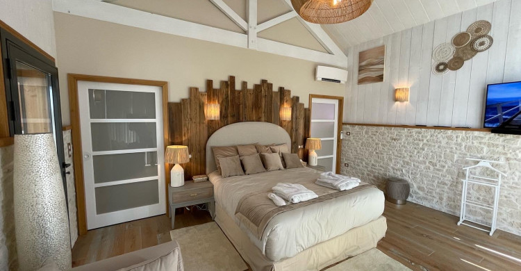 Venez vivre une escapade inoubliable dans la chambre Rêverie en Périgord, un véritable sanctuaire de détente et d'intimité conçu pour les couples en quête de romance et d’évasion. Nichée au cœur de la nature périgourdine, cette chambre marie élégamment charme authentique et confort moderne, vous offrant un cadre idéal pour vous ressourcer à deux.
