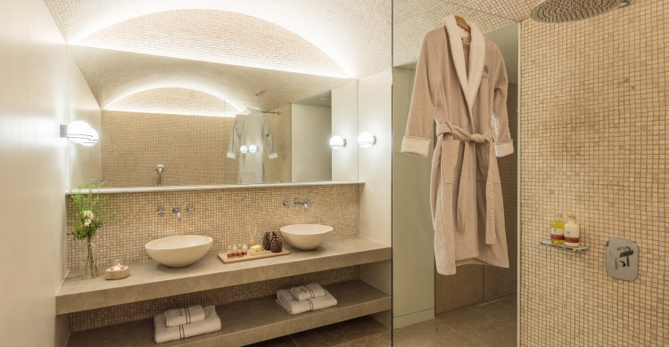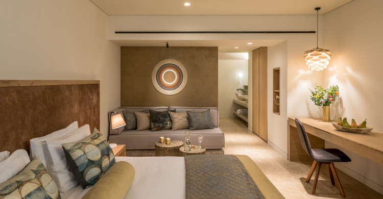 Room area: 42-49 m2 A special aura of tranquility Offering exceptional comfort and a generous layout, Executive Deluxe guestrooms boast a marble or wooden-floored area stretching to 42-49 square metres, with every detail designed with precision and purpose. A seating area is perfect for moments of quiet reflection or reading, or perhaps to simply enjoy a cup of tea in the comfort of your room. The option of twin beds, a small double (130cm) or a super king-size bed and the latest technology appliances provide the final touches of modern comfort. The luxury of choice In the marble bathroom, there is the option of either a soothing shower or a bathtub, allowing you to fully experience the penetrating effects of the ancient Greek recipes of herbal therapy and aromatherapy contained in the signature Euphoria Retreat bathroom amenities. Meanwhile, the village of Mystras or private forest become yours on a balcony or terrace. The dreamy curves and Byzantine-inspired colours and fabrics of Euphoria Retreat merge with the elegance of designer furniture and artwork in Executive Deluxe Rooms, creating a special aura of tranquillity and mysticism. Utterly relaxing and perfectly attuned to supporting your transformative journey.