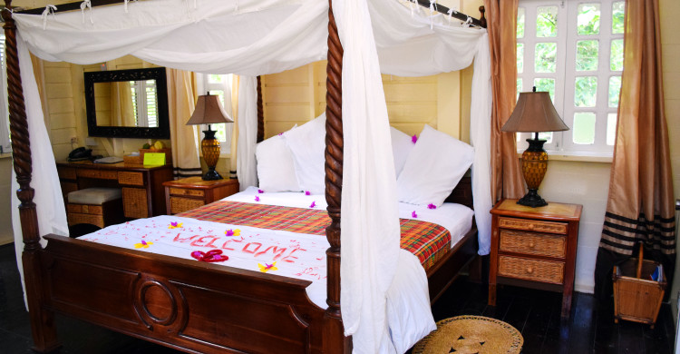 There are 4 one-bedroom cottages at Fond Doux Plantation & Resort in St. Lucia, each lovingly restored and hand-crafted by Caribbean artisans. Our one-bedroom accommodations are perfectly suited for couples looking to enjoy some peace and quiet in a romantic and secluded setting, far away from the hoards of tourists found at other resorts in St. Lucia. Each cottage also offers a wide range of amenities to make sure your stay with us is as comfortable and relaxing as possible.