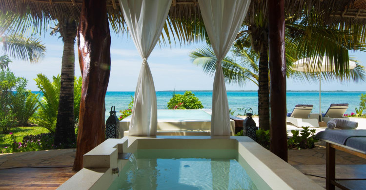 This gorgeous ocean-front villa includes jungle spa treatments, authentic African experiences and plenty of romantic activities and adventures to share together during your special honeymoon trip in Zanzibar.