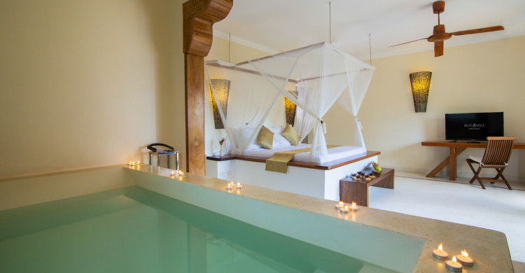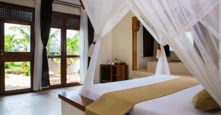 The Executive Junior Suites twice the size of the classic bungalows, are very close to the sea and enjoy a breath-taking ocean view. A private veranda and a bathtub in the room are luxury details in the typical African style. These rooms are also equipped with the most modern comforts.