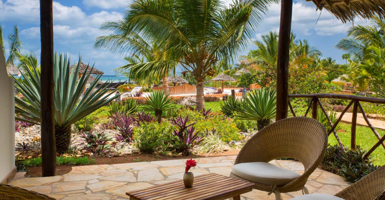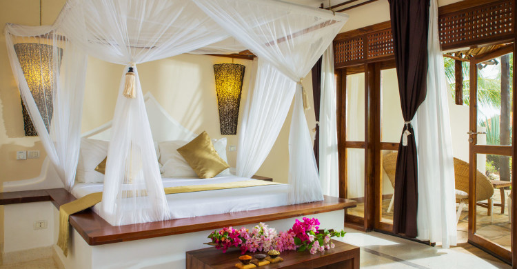 Our Luxury Suites are sea front and have a unique view. The living room opens on a private veranda, and there are two Maldivian style bathrooms. The private garden is a little gem if you want to escape from the outside world. Everything is provided with all comforts and services.