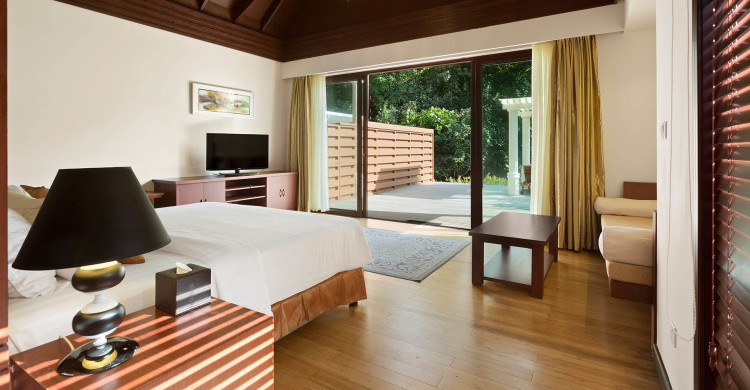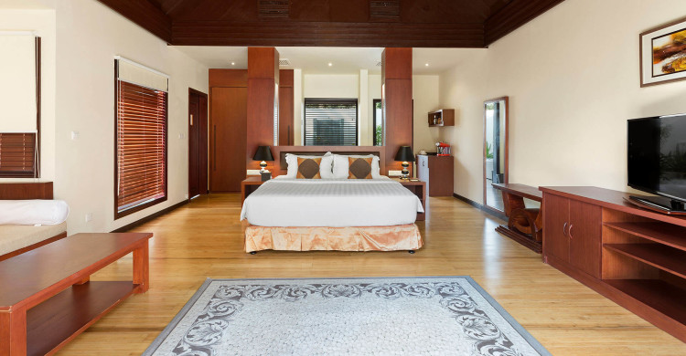 Nestled in the lush gardens of tropical flora and few steps away from the beach, the Garden Villas are elegantly designed and generously spacious 110 square meters with a large private sundeck, complete with your own private tropical garden with a semi-open bathroom complimented with a bathtub to offer the comfort and luxury for individuals and families. The interconnecting rooms allow you to stay close when travelling with your family or friends. - 2 Adults & 2 Children / 3 Adults - 1 King Bed - 110 SQM