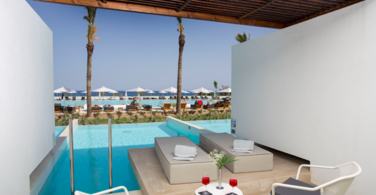 Room overview: Room size: 40 m2 Maximum occupancy: 3 adults Bed size: Double or Twin Bed & 1 double sofa-bed View: Terrace with view to the sea Swimming Pool: Private
