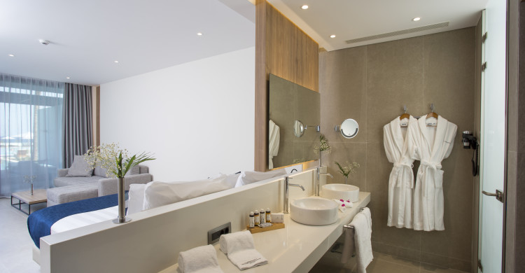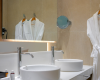 In-Room Facilities: Individually controlled Air Conditioning Complimentary Wi – Fi internet (Fiber to the room technology) Satellite TV Flat screen LCD Smart TV 43’’ Radio Direct Dial Phone Nespresso Coffee & Tea making facilities Telephone (Bed – Bathroom) In-room safety deposit box Mini Fridge Mini bar available upon request (surcharge) Open Wardrobe Luggage Rack Terrace with view to the sea leading to the private pool Pillow Menu Turndown service Daily Maid Service Bathroom facilities Separate walk- in Shower Separate Toilette Hair Dryer Magnifying Mirror Quality Bathrobe & his/hers slippers Full range of Branded toiletries / Personal care products