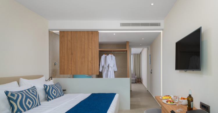 Room overview: Room size: 47 m2 Maximum occupancy: 3 adults & 1 child Bed size: Double or Twin Bed & 2 sofa-beds (two single or one double sofa-beds) View: Terrace with view to the sea Swimming Pool: Private