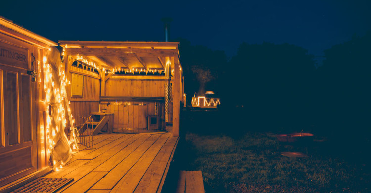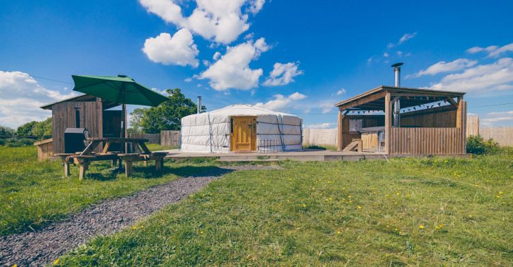 Your yurt is fully insulated and there is a wood burner for added cosiness, hot water bottles plus a unit containing all the necessities such as mugs, tea, coffee, hot chocolate and biscuits. A full size fridge with freezer compartment is ready and waiting, Outside you can find a double ring gas stove plus a combination BBQ and pizza oven, just be sure to bring some charcoal with you. Enjoy dining at your picnic table before relaxing around your fire pit or in the bubbles of your private hot tub.