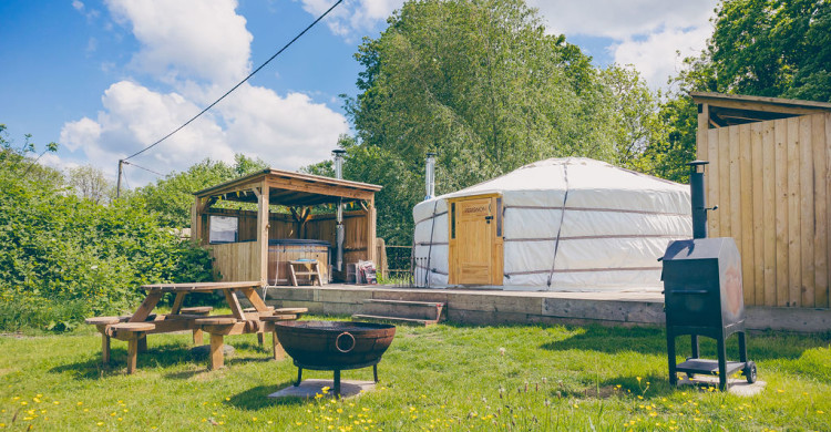 Your yurt is fully insulated and there is a wood burner for added cosiness, hot water bottles plus a unit containing all the necessities such as mugs, tea, coffee, hot chocolate and biscuits. A full size fridge with freezer compartment is ready and waiting, Outside you can find a double ring gas stove plus a combination BBQ and pizza oven, just be sure to bring some charcoal with you. Enjoy dining at your picnic table before relaxing around your fire pit or in the bubbles of your private hot tub.