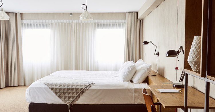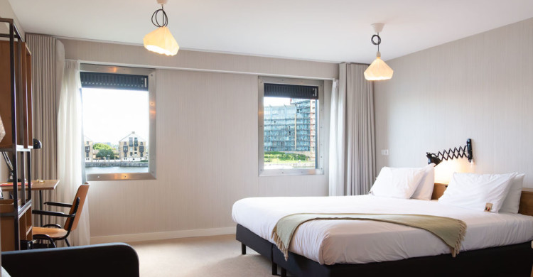 Sleeps two in a king size bed and offers stunning views over the water. Rooms are spacious at approximately 30 square meters and are located at the corners of the floating platform. The Corner Waterfront room includes fluffy pillows, a desk area, in-room safe and complimentary high-speed WiFi. The en-suite bathroom boasts a stand-up shower. Rooms are located on the first and second floor (elevator access).