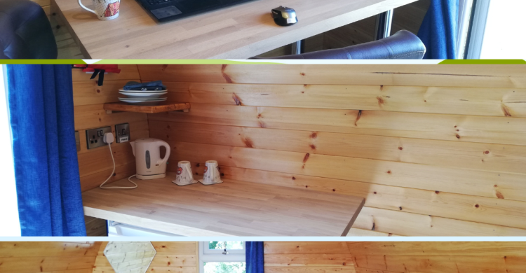 It has a comfortable 4ft6 double bed ideal for restful nights and lazy mornings. Electric kettle Plates, bowls, mugs cutlery and plastic glasses A fridge to keep your drinks and treats chilled. A small heater so you can stay cosy and warm whatever the weather