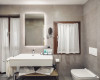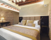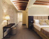 With a large double bed and modern style furniture, the suite is brightened by two stunning Murano glass masterpiece chandeliers.