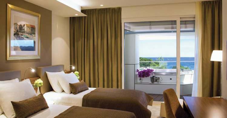 The flooring is parquet or fitted carpet, and bathrooms are furnished with bathtub and shower, two sinks and a bidet, hairdryer and high quality Natura Bissè toiletries. The terrace is equipped with two Jacuzzis, deckchairs and patio furniture.
