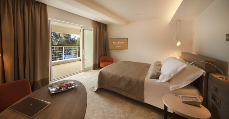 Superior rooms are double rooms with balcony facing the sea side (Cikat Bay) or the park side (Park Forest Cikat). (28 sqm). The flooring is parquet or fitted carpet, and the bathrooms are furnished with bathtub or shower, hairdryer and high quality Natura Bissè toiletries.