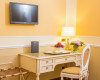 Classic Double rooms have a surface area of between 15 and 20 sqm. Desk with lamp and outlets for laptops. Armchair and side table.