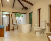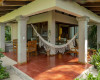 While having the same design and facilities as the bungalows mentioned above, two of our bungalows have the privilege of being located directly in front of the beach. The ocean front terrace is ideal for a romantic, private candlelight dinner. Every unit has a large private terrace with a hammock. The spacious bathrooms have a double whirlpool and an outside shower with hot water. Originally these units were designed to keep the inside cool through natural air circulation. If someone would like to enjoy the balmy evenings and wake up in the morning to the singing of the birds, the howl of the monkeys, and the roaring of the sea we can still offer this environmentally friendly “ocean breeze” option.