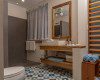 This unit have a king size bed, a pull out sofa bed, private bathroom, radio, phone, small fridge, safe deposit box and coffee maker.