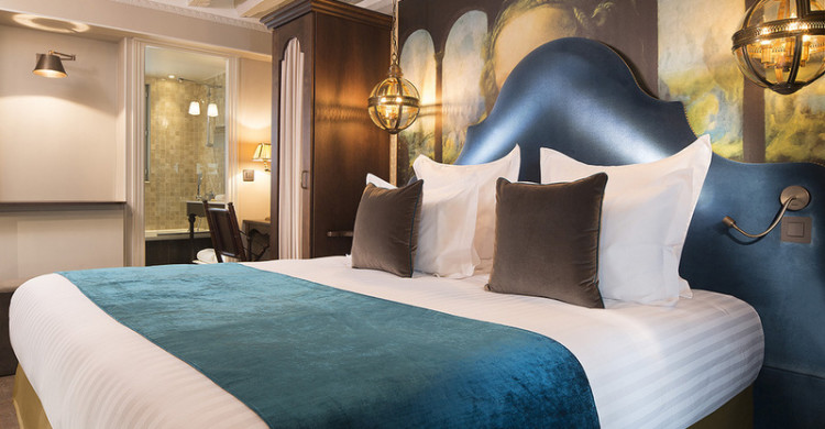 The Renaissance rooms are largely inspired by the period. Magnificent Venetian mirrors add to the charm of their unique feel. At the head of the bed, there are frescoes representing some of Leonardo da Vinci’s major works in a pastel palette that recalls the colours in use at the time.