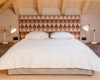 The 25 by 40m2 suites, built into the Valais roof space with larch and pine wood, have queen-size beds (160 cm), reading corner and antique Valais closets. The suites are characterised by their elegant, brushed larchwood floors oiled in white, and the typical English bath with multi-sensory shower or free-standing bathtub. Valais mineral water, high-quality care products, hair dryer, television and free Wi-Fi are included. The suites are suitable for those with allergies.