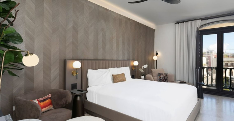 Indulge in spacious luxury with this exquisite One-Bedroom Suite, perfect for honeymooners and romantic escapes. The Master Bedroom features a plush King-size bed, while Spanish Louver doors lead to a Juliet balcony offering enchanting views of the Cathedral. Antique marble floors and elegant décor complete the ambiance of timeless romance and sophistication.