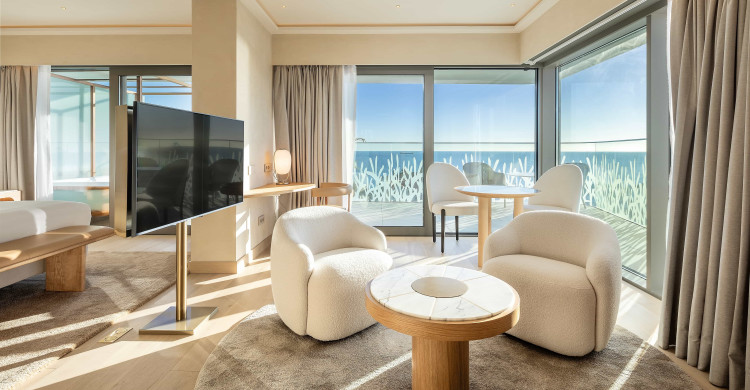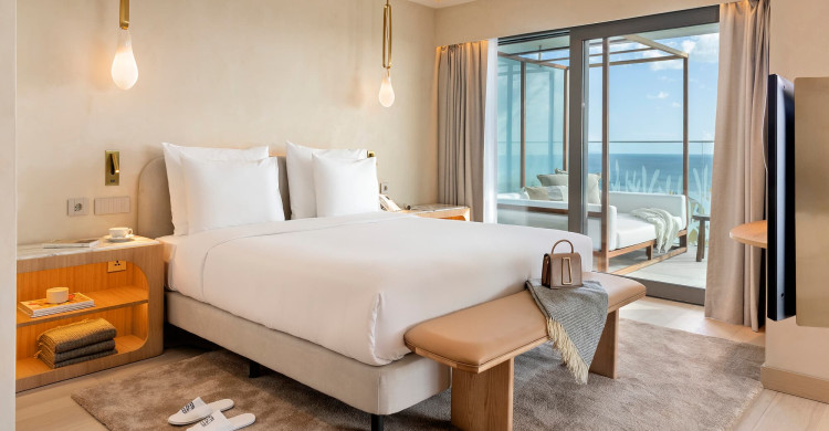 The name says it all! - Exclusive 42 m2 suites , lit by natural light, carefully designed and decorated, with light furniture in natural pine. A unique design with all the comforts inside and out, including: a living and working area, bay windows that open onto an impressive and spacious 28 m2 balcony , overlooking the ocean . They feature a Smart TV with screen sharing, free Wi-Fi, a mini fridge, coffee and tea making facilities, among other amenities such as bathrobes and slippers.