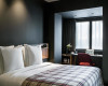 BEDROOM - Queen size double bed (160X190 cm) - 100% French-made bedding and linens - Flat screen satellite TV (43 '') - Courtesy tray with selection of 3 teas and bottles of water - Chest - Laptop and printer on request