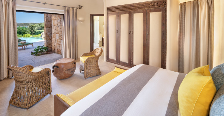 Designed in 1963 by architect Luigi Vietti, the hotel offers 66 guest rooms and including 6 private villas and 9 unique suites with private pool. The rooms’ interior design is inspired by the Mediterranean style, with terracotta tiles in soft pastel colours and furniture designed by local artisans. All rooms are equipped with a safe, mini-bar and flat-screen cable TV.