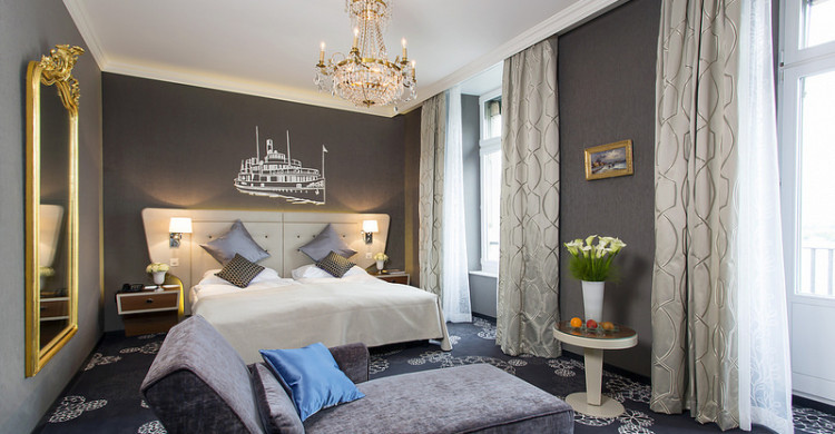 Noble and elegantly furnished suite for the ultimate in comfort, well-being and relaxation. (65 sqm) With its separate bedroom, lounge and dining area with guest WC, it is ideally suited for receiving guests while retaining your own privacy. The views from all the deluxe suites are simply spectacular, featuring the stunning mountain scenery and Lake Lucerne at your feet. Some of the deluxe suites also have their own balcony.