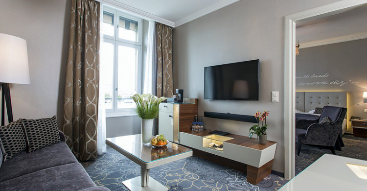 These elegant suites with separate lounge area (20 sqm) and spacious bedroom (25 sqm) provide the ideal environment to work and relax. (45 sqm) The lounge area offers plenty of space and can be used both as a study and meeting room and as a living room for relaxing. Most of the suites have their own balcony, and the views of the majestic mountain scenery and Lake Lucerne are simply stunning.