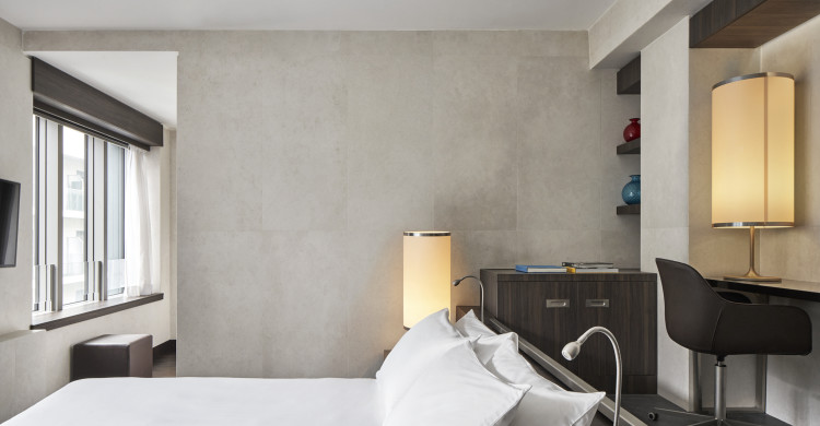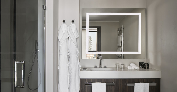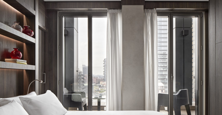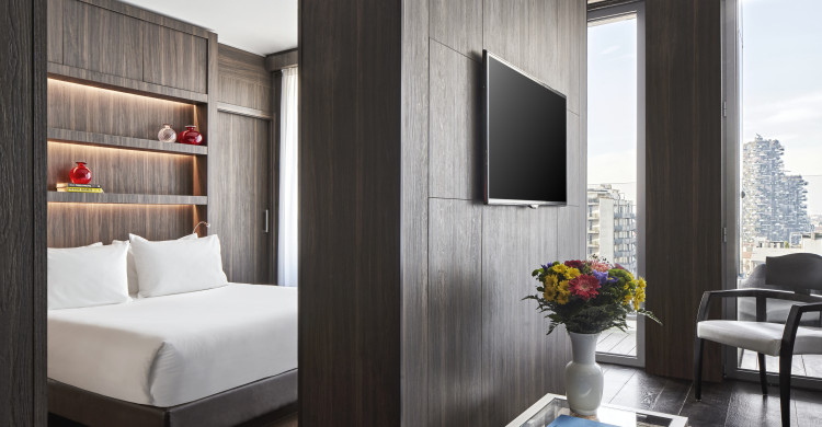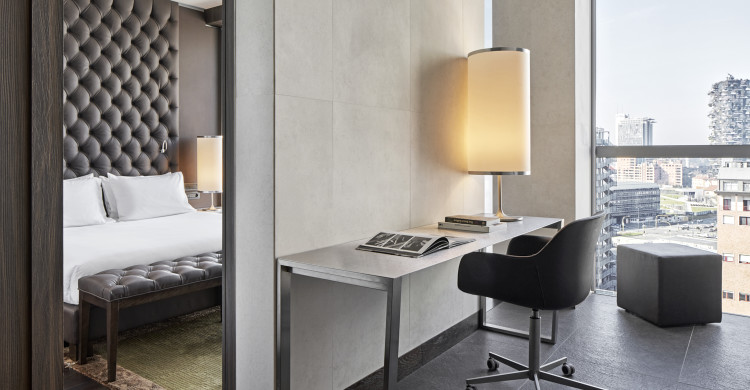 Modern Suites of 32-42 square meters of space featuring large windows, comfy king bed, bathroom with large shower and, some of them, private steam room or private terrace. The ideal room category where to unwind and relax after a busy day in Milan.
