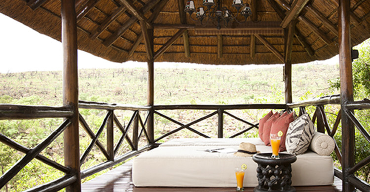 The three guest rooms each have a king-size bed and en-suite bathrooms with outdoor showers. Each room has a private viewing deck and a luxurious day bed “sala” where guests can relax during the day while taking in the breathtaking views of the Waterberg.