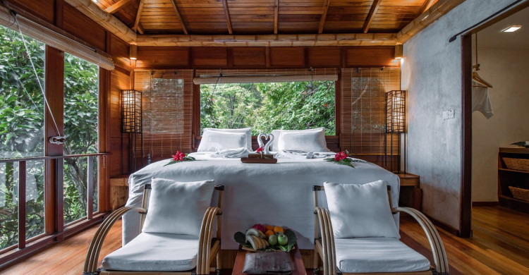 Daybeds overlooking the ocean invite lazy days reconnecting, while fruity cocktails at sunset on the unspoilt private beach offer a playful and spirited feel, and our treetop chalets ensure the utmost seclusion for unforgettable nights alone.