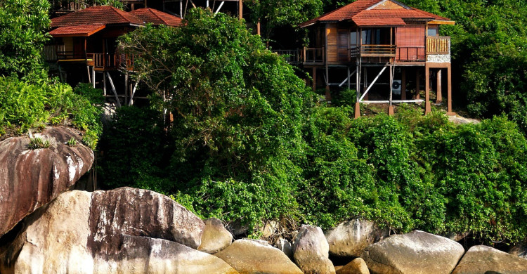 On the east coast of Malaysia, on the southern coast of Tioman Island sits Japamala Resort. Nestled among acres of exceptional wilderness and foliage, hides an idyllic selection of naturally constructed chalets, sarangs and villas, moulded to fit around the unspoiled landscape.