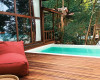 The villa offers 114 square meters of living space, a heated outdoor plunge pool set amongst the natural backdrop of boulders and jungle and a swimming pool on the sea facing pool deck.