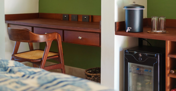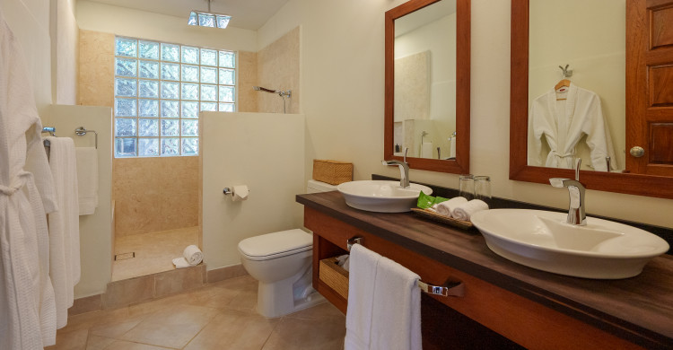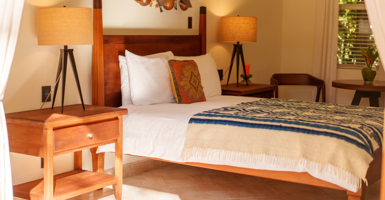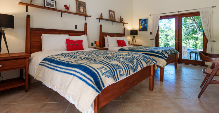The Casita is referred to in Spanish as "Casitas" or small homes and are positioned off a lovely pathway lined with fragrant tropical fruit trees and lush landscaping. The suite consists of 1 or 2 Queen Size beds with memory foam mattresses, shower room with double basins, furnished back and front porch, and sitting area. Colorful art throughout, A/C, Wi-Fi, power fans, mini bar, LCD flat screen cable TV, ample wardrobe space, and iPod docking stations.