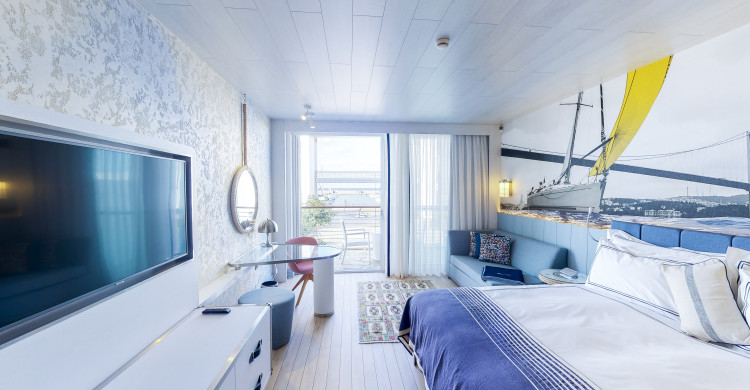 Our partial marina view cabins are designed to transport you on board a yacht for an inviting escape. Intimate and indulgent, every cabin boasts a charming balcony where you can gaze at the swinging masts, the sparkling sea, or our lush green garden in absolute tranquillity. No distractions interrupt the serenity of this retreat, and each night, a marine lullaby awaits.