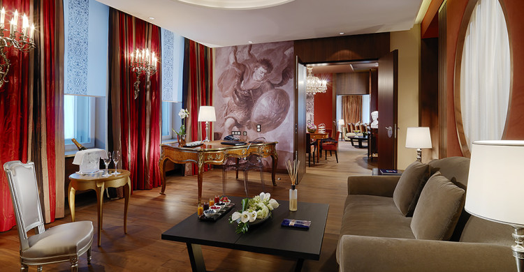 190 sqm Munich’s most luxurious suite with the highest quality premium fabrics and materials View over the famous Maximilianstreet Two bedrooms each with one king bed Bathrooms with underfloor heating as well as sauna and whirlpool In-room Coffee/tea facilities Two living rooms, one dining room Our General Manager Axel Ludwig takes personally care of your reservation