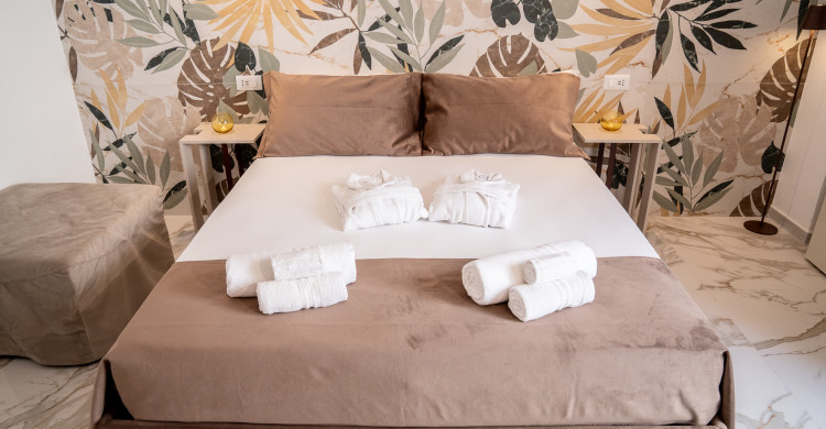 The suite called La Giulia reconciles the tradition represented by the vaults with the predominant elegance of the coverings and furnishings, whose luxurious and romantic appearance culminates with the presence of the Jacuzzi.