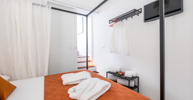 Bed linen, towels, bathrobes, slippers, courtesy set, hairdryer, minibar, coat hanger, air conditioning, radiator, smart TV.