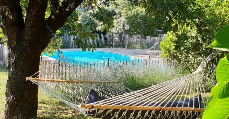 Do you fancy a wonderful relaxing holiday in the South of France? Do you want to sleep in one of the five beautiful designed rooms of our elegant and stately 'maison de maître'? Then you have come to the right place! In the little village of Riols, located in the provincial nature park 'Haut-Languedoc' is our chambres d'hôtes 'La Cerisaie' (or: the cherry orchard) situated; a mansion from 1869 surrounded by a beautiful lush garden, containing many flowers and plants, several seats andsun loungers and two hammocks. A nice swimming pool of 10 x 5 meters, surrounded by hardwood chairdecks, is there to relax, which makes it all together a remarkable place.