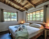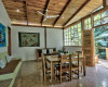 A beautiful open concept living area exposed to the surrounding jungle environment, yet fully screened for your comfort. With a deck on the back of the house for relaxing, a well-appointed kitchen, and only steps from the property's large pool.