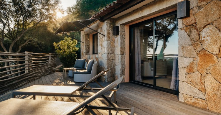 Experience pure joy and complete abandon in these independent suites. All your senses are on the alert and invite you to a change of scenery and escapism: the fragrances of the Corsican maquis surrounding these apartments, the spacious private terrace and its infinite view over the azure sea, the elegant, colourful and refined interior and the privacy.