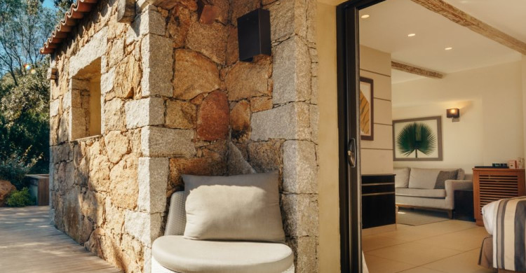 Experience pure joy and complete abandon in these independent suites. All your senses are on the alert and invite you to a change of scenery and escapism: the fragrances of the Corsican maquis surrounding these apartments, the spacious private terrace and its infinite view over the azure sea, the elegant, colourful and refined interior and the privacy.