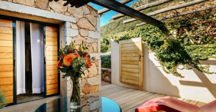 Peace and quiet characterise these rooms which offer a pleasant closed patio for a complete change of scenery and well-being. They offer elegance, comfort and privacy just a few hundred metres from the superb Palombaggia Beach and feature a 15 m2 private patio. The lovely Palombaggia road just acrross behind along those three Patio rooms, but not noisy or crowdy at all.